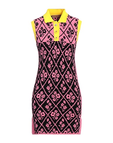 bodycon dress, knitted, lightweight knit, floral-print, no appliqués, buttoned neckline, sleeveless, unlined, button fastenings, side slit hemline