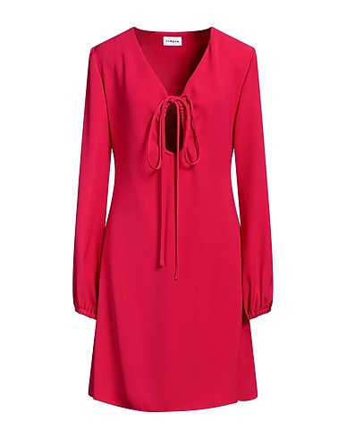 crepe, no appliqués, plain colour, deep neckline, long sleeves, unlined, zip fastening, without pockets, machine wash or dry clean, do not bleach, do not tumble dry, flared dress