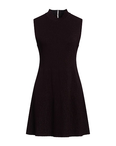 flared dress, knitted, lightweight knit, metallic, stretchy fabric, plain colour, no appliqués, mock neck, sleeveless, hook fastenings, without pockets, hand wash or dry clean, do not bleach, do not tumble dry