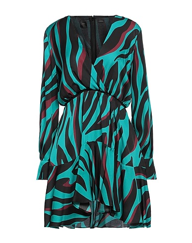 flared dress, satin, zebra-print, brand logo, v-neck, long sleeves, partially lined, zip fastening, hook fastenings, without pockets, dry clean, do not bleach, do not tumble dry