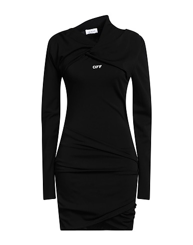 crepe, brand logo, draped, plain colour, v-neck, long sleeves, unlined, without pockets, stretch, hand wash, do not bleach, do not tumble dry, bodycon dress