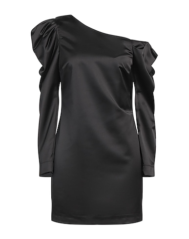 bodycon dress, satin, plain colour, gathered, crewneck, long sleeves, shoulder pads, fully lined, zip fastening, stretch, dry clean, do not bleach, do not tumble dry