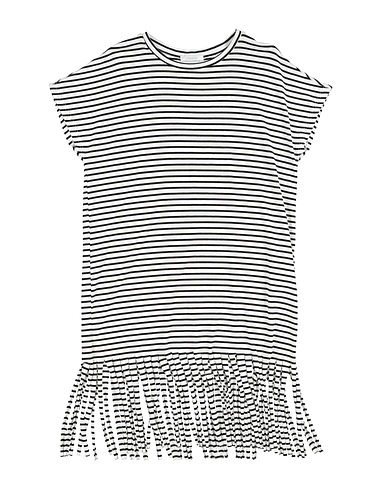 jersey, striped, fringes, crewneck, short sleeves, unlined, stretch, machine wash or dry clean, do not bleach, do not tumble dry