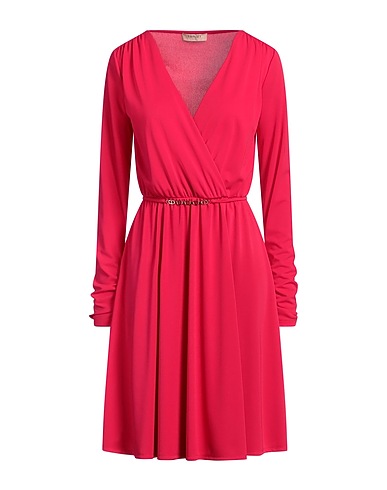 flared dress, crepe, plain colour, belt, v-neck, long sleeves, unlined, without pockets, hand wash or dry clean, do not bleach, do not tumble dry