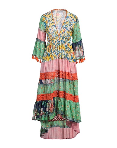 asymmetric dress, woven, multicolour, lace trims, deep neckline, 3/4 length sleeves, without pockets, hand wash or dry clean, do not bleach, do not tumble dry
