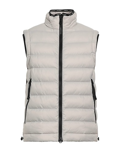 techno fabric, brand logo, solid colour with appliqués, turtleneck, single-breasted , sleeveless, padded inner, zipper closure, multipockets