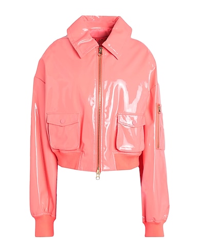 coated fabric, varnished effect, no appliqués, solid colour, classic collar, single-breasted , long sleeves, ribbed cuffs, fully lined, zipper closure, multipockets, generic outerwear