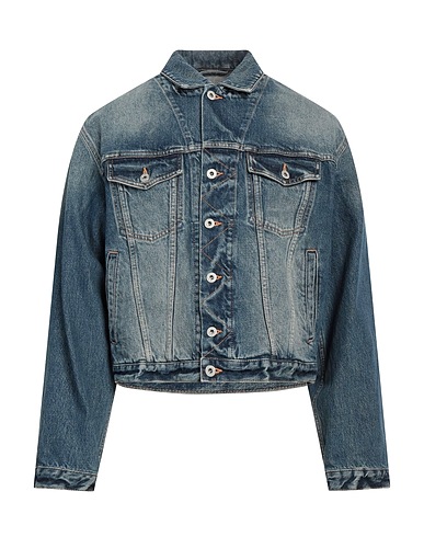 denim, faded, brand logo, solid colour, medium wash, classic collar, single-breasted , long sleeves, unlined, button closing, multipockets, large sized