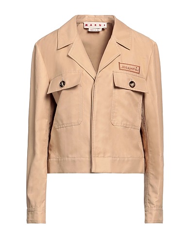 gabardine, brand logo, plain colour with appliqués, lapel collar, single-breasted , long sleeves, unlined, button fastenings, multipockets, contains non-textile parts of animal origin, generic outerwear