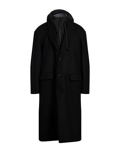 single-breasted coat, felt, no appliqués, plain colour, hooded, long sleeves, fully lined, zip fastening, multipockets, flap pockets, machine wash