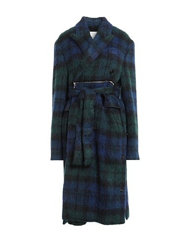 belted coat, brushed-felt, no appliqués, tartan pattern, lapel collar, double-breasted, long sleeves, buttoned cuffs, fully lined, button fastenings, one chest pocket, flap pockets, dry clean, do not tumble dry