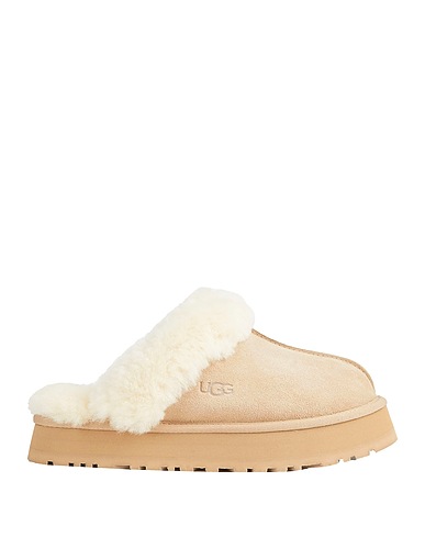 mules, shearling, plain colour, brand logo, lined in shearling, round toe, flatform, rubber sole, contains non-textile parts of animal origin