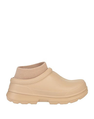 brand logo, solid colour, detachable lining, round toeline, square heel, plastic wedge, rubber sole, water resistant, mules model