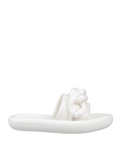 slide sandals, coated fabric, brand logo, embellished, plain colour with appliqués, fully lined, round toe, flat, rubber sole, large sized