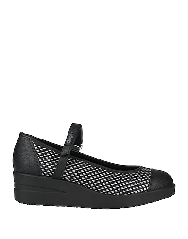 coated fabric, plain weave, glitter print, brand logo, two-tone, fabric inner, velcro closure, round toeline, wedge heel, rubber cleated sole, courts