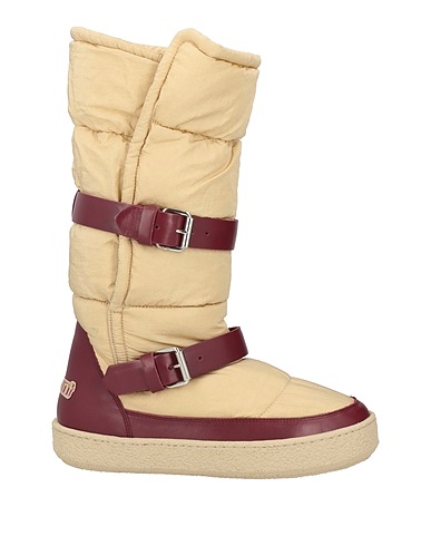 padded boots, shell, leather, two-tone, strap detailing, synthetic filling, buckle, round toe, flat, rubber sole, small sized