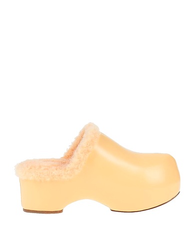 leather, hair plush fabric, no appliqués, solid colour, sherpa interior, round toeline, square heel, leather sole, contains non-textile parts of animal origin, mules model