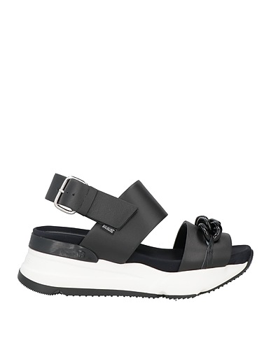 leather, contrasting applications, solid colour, fabric inner, buckle fastening, round toeline, wedge heel, rubber sole, contains non-textile parts of animal origin, technical sandals