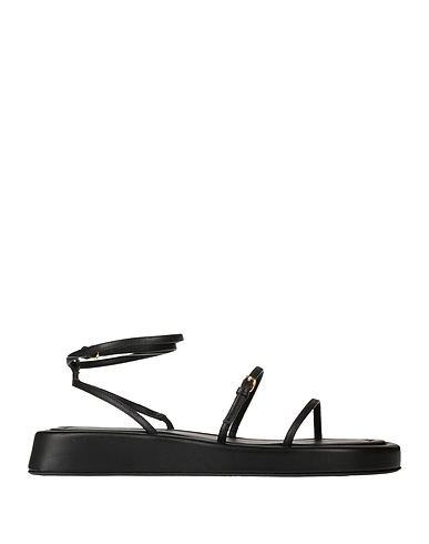 leather, no appliqués, solid colour, leather backing, buckle fastening, round toeline, flat, rubber sole, contains non-textile parts of animal origin, ankle strap sandal