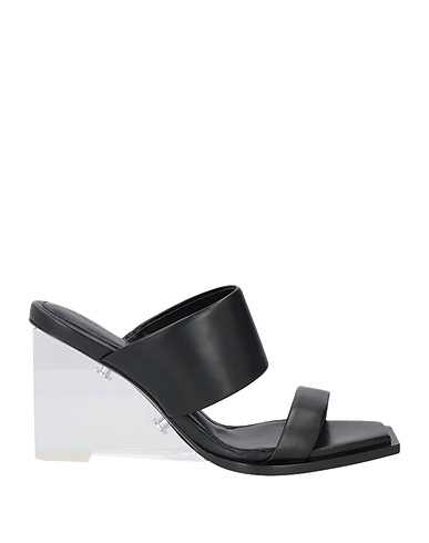 leather, no appliqués, solid colour, leather backing, square toeline, wedge heel, plexiglas wedge, leather/rubber sole, contains non-textile parts of animal origin, sandals