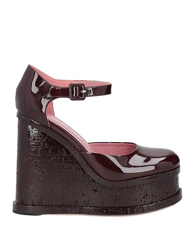 pumps, leather, patent-effect, plain colour, no appliqués, leather lining, ties at ankle, round toe, wedge heel, leather/rubber sole, contains non-textile parts of animal origin