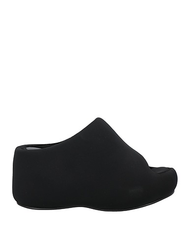 satin, no appliqués, solid colour, fabric inner, round toeline, wedge heel, rubber sole, slide sandals