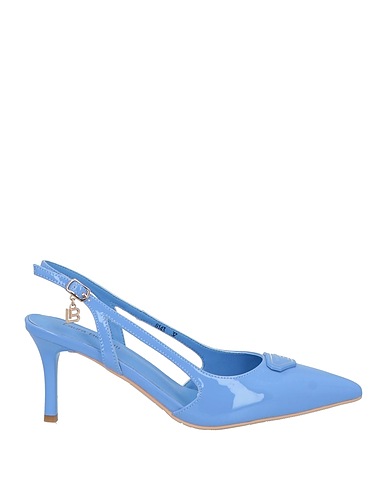 coated fabric, varnished effect, brand logo, plain colour, fully lined, buckle fastening, narrow toeline, stiletto heel, rubber sole, slingback pumps