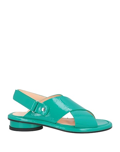 patent leather, no appliqués, plain colour, leather lining, velcro fastening, round toe, geometric heel, leather/rubber sole, contains non-textile parts of animal origin, ankle strap sandals