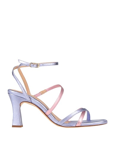 leather, metallic, no appliqués, two-tone, leather lining, buckle-fastening ankle strap, square toe, spool heel, leather sole, contains non-textile parts of animal origin, ankle strap sandals
