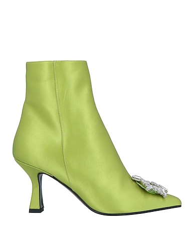 satin, embellished, plain colour with appliqués, lined interior, zip fastening, pointed toe, spool heel, covered heel, rubber sole, calf boots, small sized
