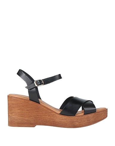 sandals, leather, plain colour, no appliqués, buckle fastening, round toe, wedge, rubber sole, leather lining, contains non-textile parts of animal origin