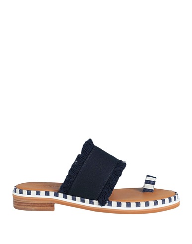 toe strap sandals, canvas, two-tone, fringes, leather lining, round toe, square heel, rubber sole, contains non-textile parts of animal origin