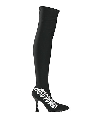 shell, brand logo, plain colour with print, fabric inner, zip fastening, pointed toe, geometric heel, rubber sole, over-the-knee boots