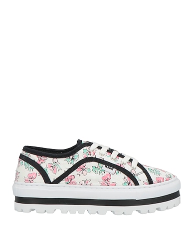 low-top trainers, gabardine, floral-print, brand logo, fabric inner, lace-up, round toe, flat, flatform