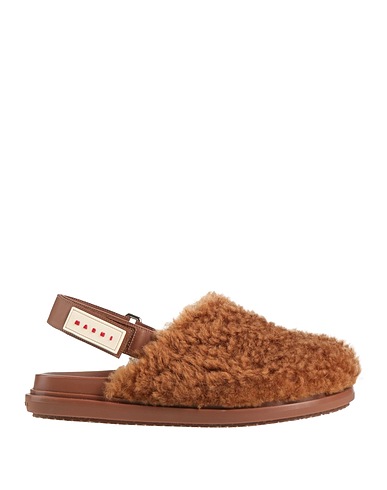 mules, shearling, plain colour, brand logo, leather lining, velcro fastening, round toe, flat, rubber cleated sole, contains non-textile parts of animal origin
