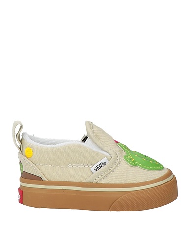 slip on, canvas, brand logo, embellished, plain colour with appliqués, fabric inner, velcro fastening, round toe, flat, rubber cleated sole