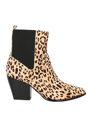 calf hair, no appliqués, leopard-print, leather lining, elasticated inserts, pointed toe, cuban heel, rubber sole, contains non-textile parts of animal origin, western ankle boots