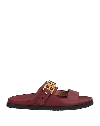 leather, embellished, brand logo, plain colour with appliqués, leather lining, round toe, flat, rubber sole, contains non-textile parts of animal origin, technical sandals