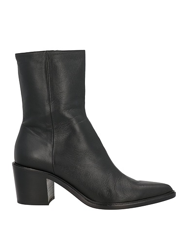 calf boots, leather, plain colour, no appliqués, leather lining, zip fastening, pointed toe, square heel, leather/rubber sole, contains non-textile parts of animal origin