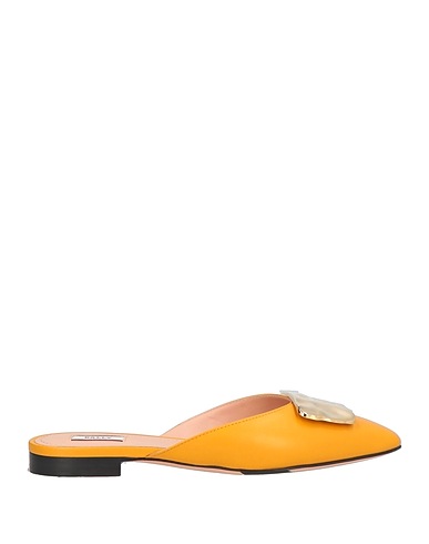 leather, embellished, plain colour with appliqués, leather lining, square toe, flat, leather/rubber sole, contains non-textile parts of animal origin, mules