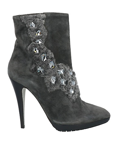 ankle boots, suede, plush fabric, plain colour with appliqués, crystals, leather lining, zip fastening, pointed toe, stiletto heel, leather/rubber sole, contains non-textile parts of animal origin