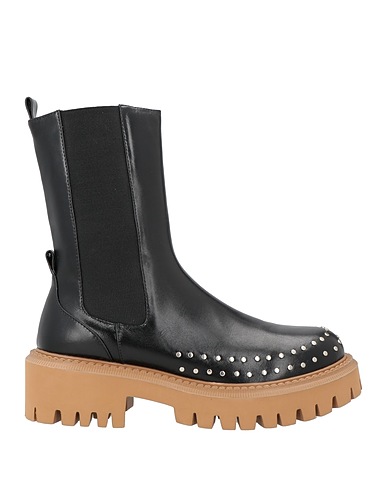 chunky boots, leather, studs, plain colour with appliqués, leather lining, elasticated inserts, round toe, square heel, lug sole, contains non-textile parts of animal origin