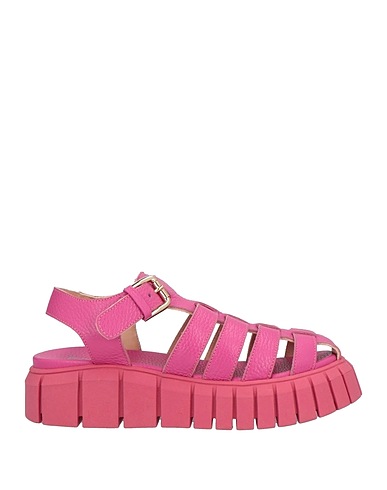 fisherman sandals, pebbled-leather, no appliqués, plain colour, leather lining, buckle fastening, round toe, flat, flatform, contains non-textile parts of animal origin