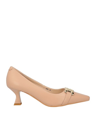 pumps, coated fabric, brand logo, plain colour with appliqués, leather lining, pointed toe, spool heel, rubber cleated sole, contains non-textile parts of animal origin