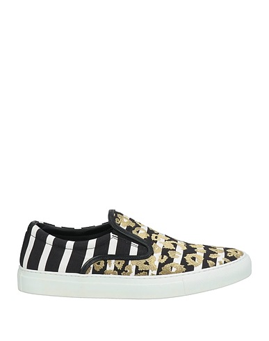 slip on, canvas, metallic, striped, no appliqués, leather lining, elasticated inserts, round toe, rubber sole, contains non-textile parts of animal origin, small sized
