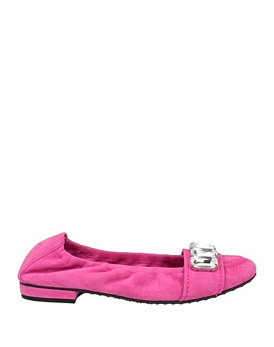 ballet flats, suede, plain colour with appliqués, embellished, leather lining, round toe, flat, rubber cleated sole, contains non-textile parts of animal origin