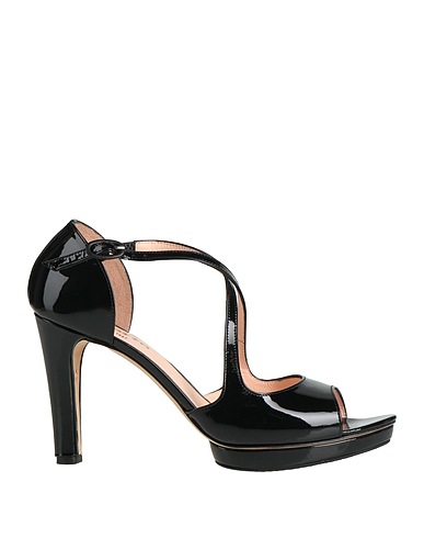 ankle strap sandals, patent leather, plain colour, platform, leather lining, buckle fastening, round toe, cone heel, covered heel, rubber sole, contains non-textile parts of animal origin