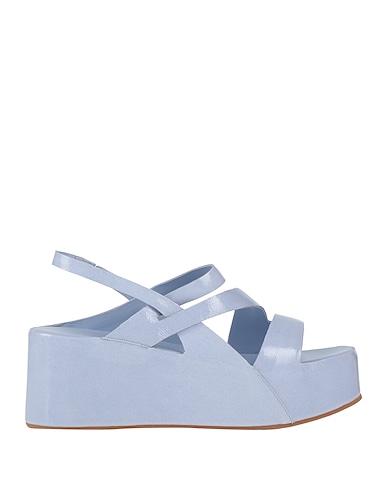 sandals, patent leather, plain colour, no appliqués, leather lining, elasticated inserts, round toe, wedge heel, rubber cleated sole, contains non-textile parts of animal origin