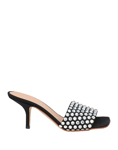 slide sandals, satin, plain colour with appliqués, crystals, leather lining, square toe, spool heel, leather sole, contains non-textile parts of animal origin