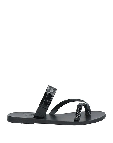 thong sandals, leather, crocodile-print, no appliqués, leather lining, round toe, flat, leather/rubber sole, handmade, contains non-textile parts of animal origin